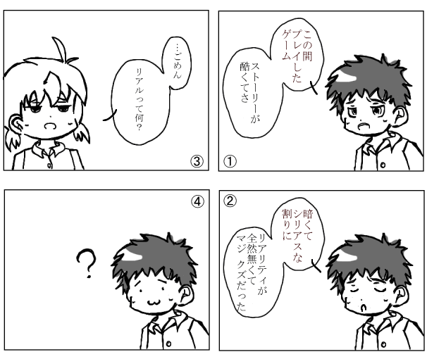 琥珀色の現実世界と、色鮮やかな叙事世界の対比。